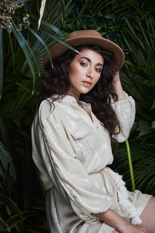 Sunny Leone in Champagne sequin dress