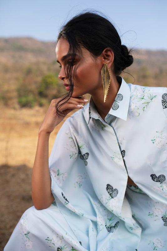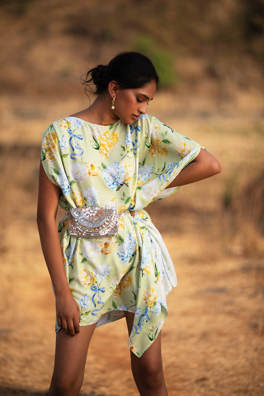 Pink Butterfly Peony Prancer draped off shoulder dress